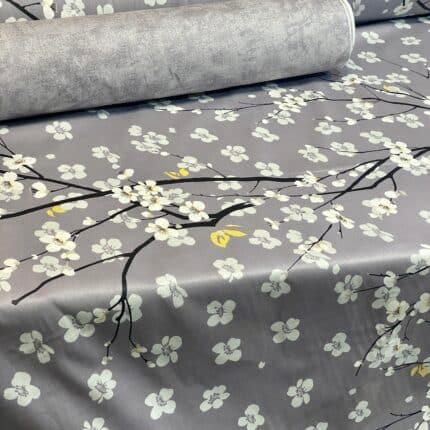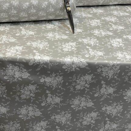 بهترین قیمت فروش ملحفه طوسی شکوفه سفید + فروش عمده