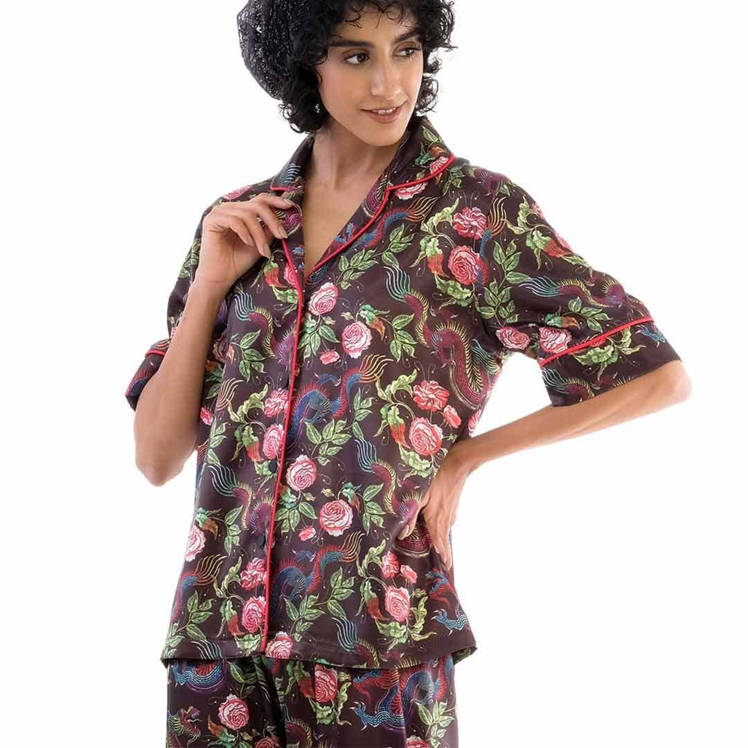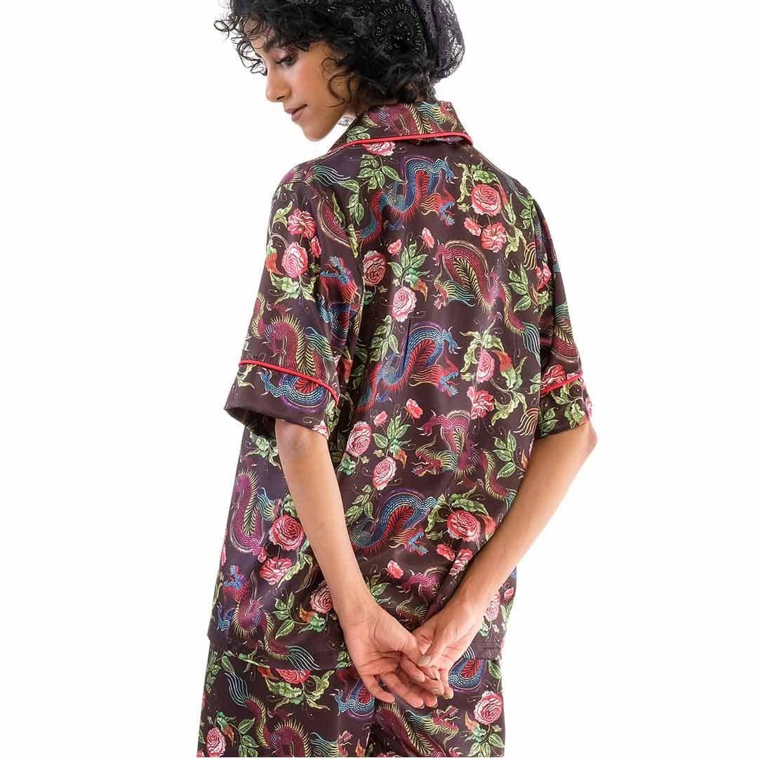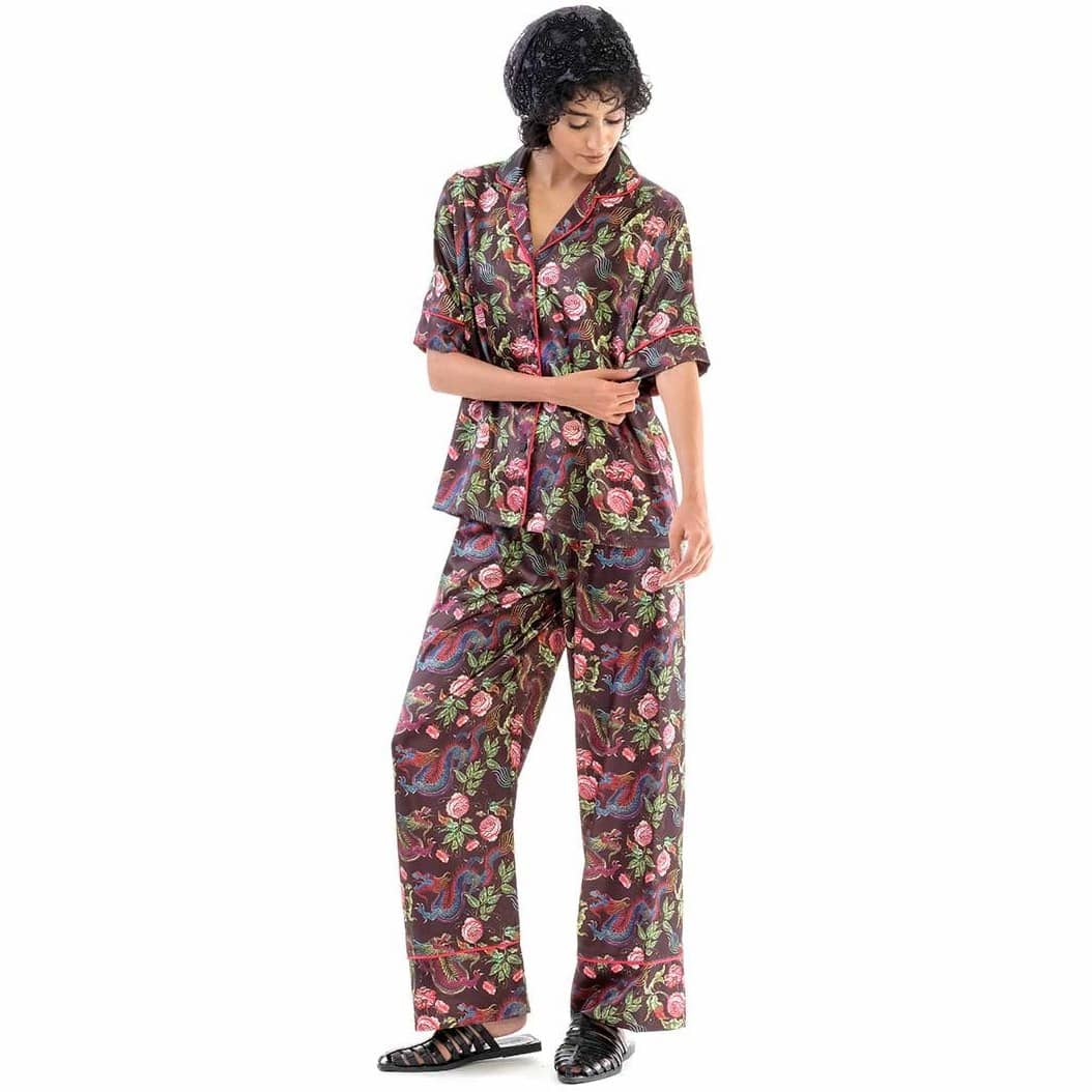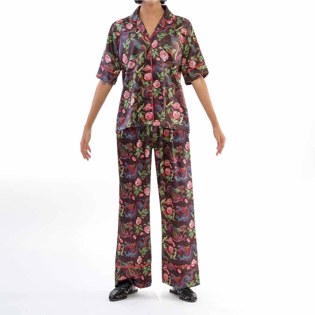 لباسها آزاد و راحت هستند، پس لطفاً سایز خود را انتخاب کنید و سایز بزرگتر سفارش ندهید. سایزبندی: XS ،S ،M ، L،XL ،XXL ،XXXL مشخصات محصول: جنس: ساتن ابریشم رنگ: مشکی + طرحدار طرح دراگن + رز مغزی دوزی لب آستین – لب یقه -لب پاچه یقه انگلیسی استین کوتاه جلو دکمه ویژگی ظاهری شلوار: پیژامه راسته کمر کش نوار دوزی قد: ۱۰۰ کجا بپوشیم… مسافرت . هتل ،خانه نحوهی شست و شو و اتوکشی: با آب سرد شسته و یا خشکشویی شود حداکثر دما مناسب برای اتوکشی 60 درجه است با حرارت متوسط اتو کشی شود از مایع سفید کننده استفاده نشود