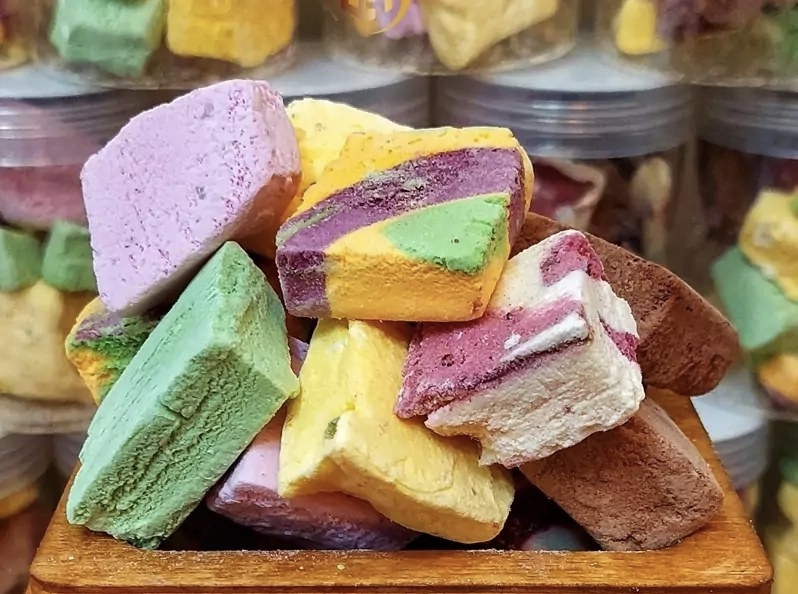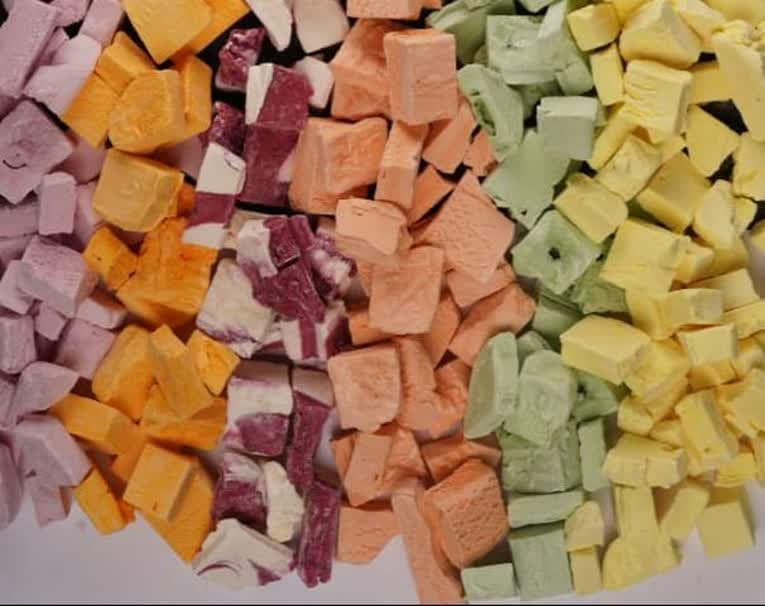 بستنی خشک مخلوط یک محصول ترد و سبک است که با استفاده از روش خشک انجمادی یا خشک هوایی تهیه می شود و ترکیبی از چند طعم متنوع مانند وانیلی شکلاتی توت فرنگی و موزی دارد. این بستنی بدون نیاز به یخچال نگهداری می شود و در هر شرایطی قابل مصرف است. بافت آن پفکی و کرانچی بوده و هنگام تماس با دهان سریع ذوب می شود و حس بستنی تازه را منتقل می کند. بستنی خشک مخلوط سرشار از انرژی بوده و برای سفر کمپینگ و میان وعده کودکان بسیار محبوب است.