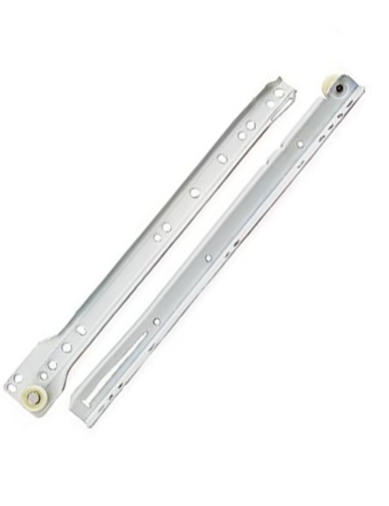 ریل غلطکی معمولاً از جنس فولاد یا آلومینیوم طراحی میشوند و با رنگهای پودری و کوره ای پوشش داده میشوند ساختار اصلی این ریل بسیار ساده است که یک بخش آن به کشو و بخش دیگر بروی بدنه کابینت نصب میشوند تشکیل شده هستند تولید میشوند.