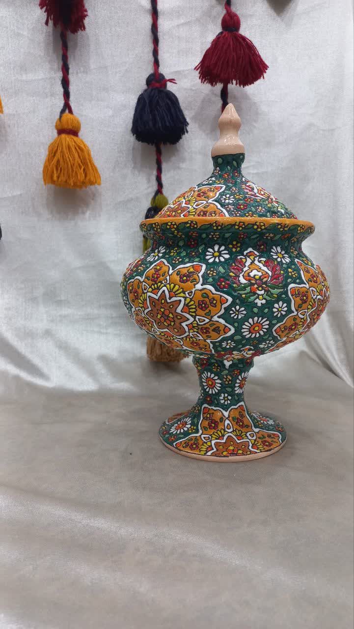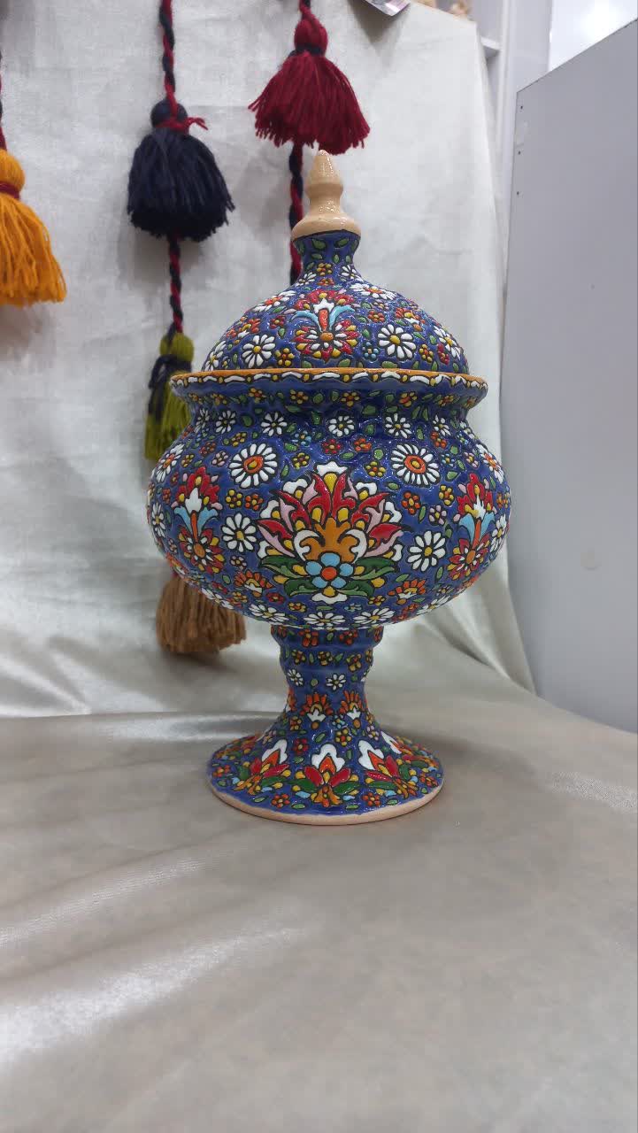 این محصول یک شکلات خوری میناکاری با طرح سنتی و منحصر به فرد خود که با درب و پایه است در هر مهمانی، منزل، هتل ،رستوران های سنتی و حتی هدیه دادن گزینه بسیار مناسبی و عالی باشد علاوه بر جای شکلات می تواند برای آجیل و شیرینی هم مناسب باشد خرید عمده به صرفه تر برای مشتریان است.