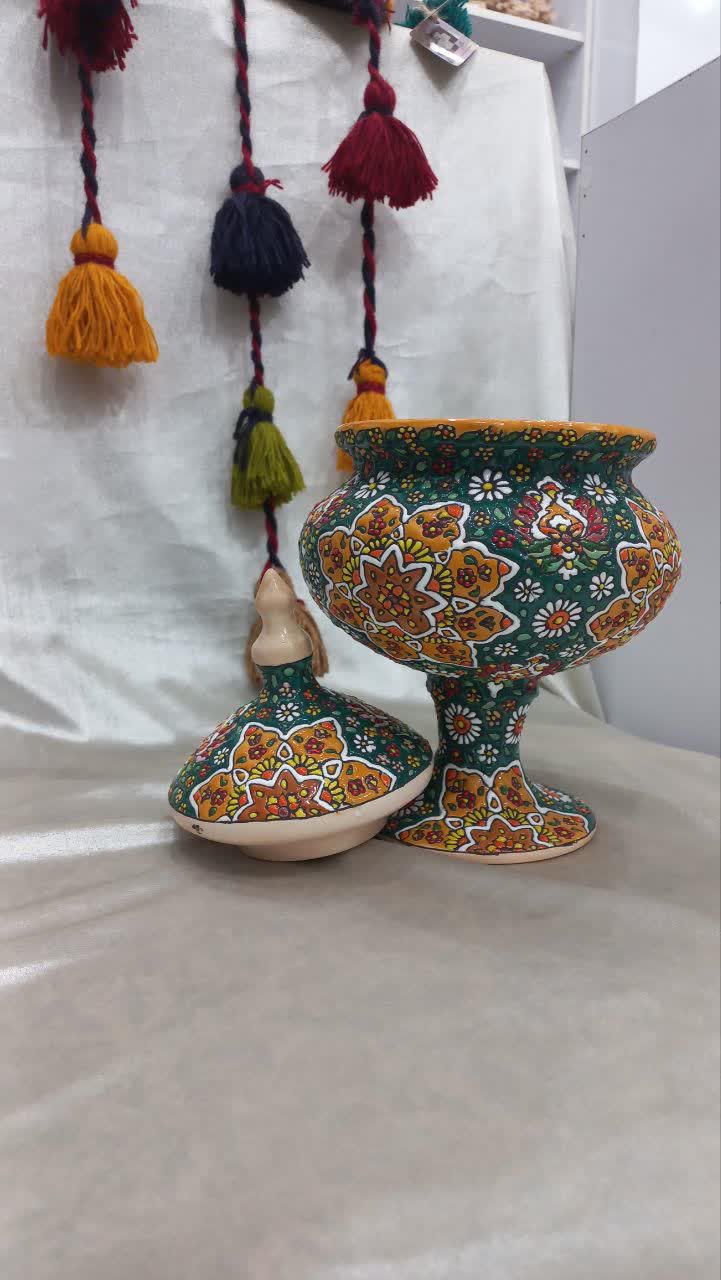 فروش شکلات خوری میناکاری روی سفال با درب و پایه