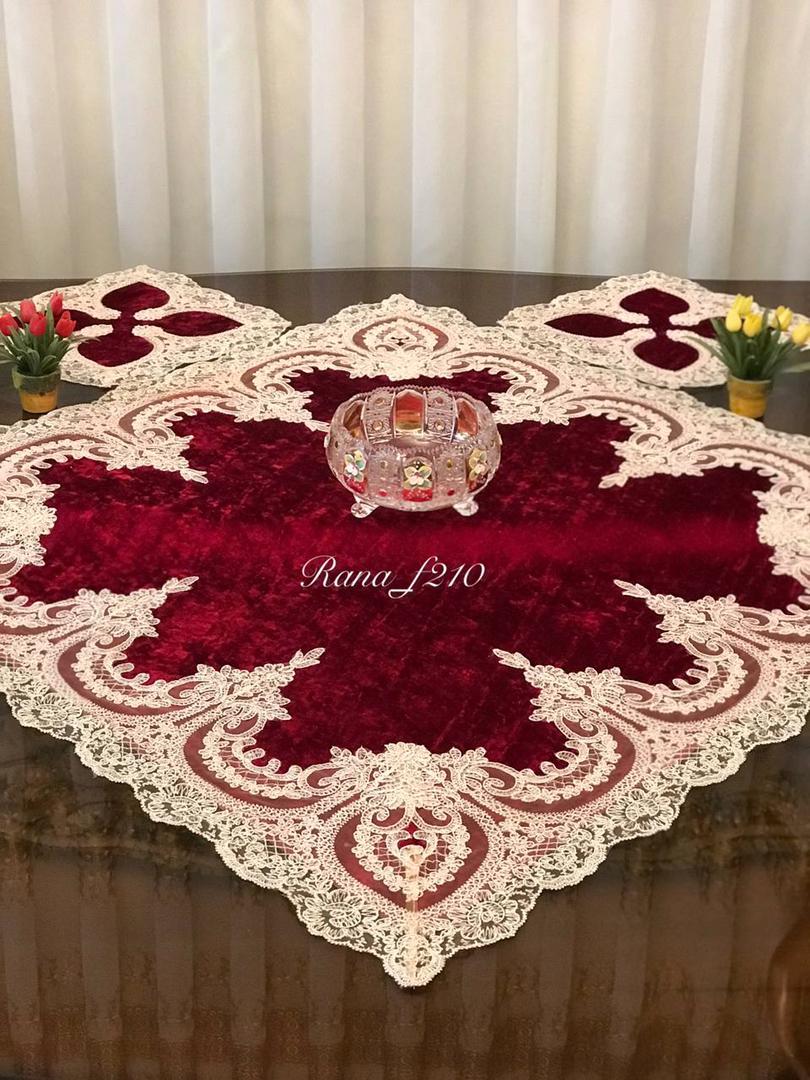 فروش ست رو میزی مربع مخمل پتینه با دانتل لنگری