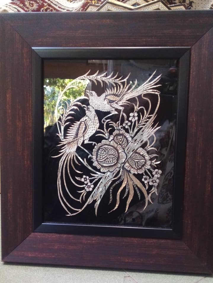 فروش تابلو قلم زنی با قاب چوبی مربع