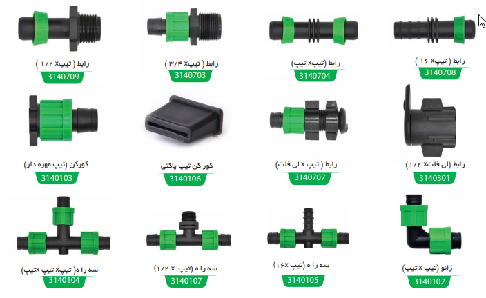 | لوله و اتصالات آبیاری قطره ای بالای 10 پک | 550.000 |