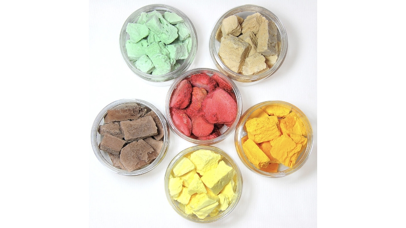 بستنی خشک بسته بندی شده محصولی سبک و ترد است که با روش خشک انجمادی تهیه و در بسته های وکیوم یا قوطی های مقاوم رطوبت بسته بندی می شود تا تازگی و طعم آن حفظ شود. این نوع بستنی در بسته های تک نفره و چند طعمه مانند وانیلی شکلاتی توت فرنگی و موزی تولید می شود. بسته بندی آن معمولا از جنس فویل لمینت یا پلاستیک مات ضد نور است تا مانع جذب رطوبت و تغییر طعم شود. بستنی خشک بسته بندی شده عمر طولانی دارد و برای سفر میان وعده مدرسه و مصرف تفریحی بسیار مناسب است.