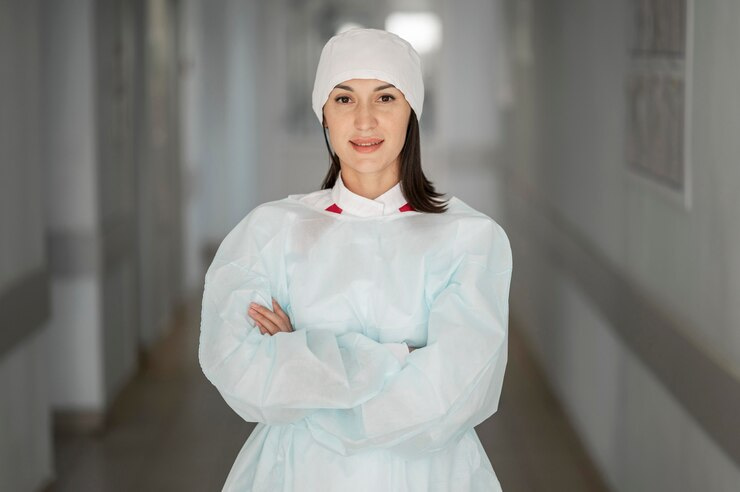 گان یک بار مصرف سفید ایمن و راحت در عمل های جراحی