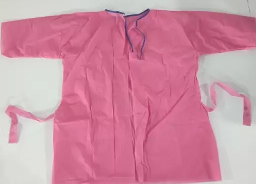 گان یک بار مصرف صورتی با طراحی متناسب با بدن و نخ ضد حساسیت