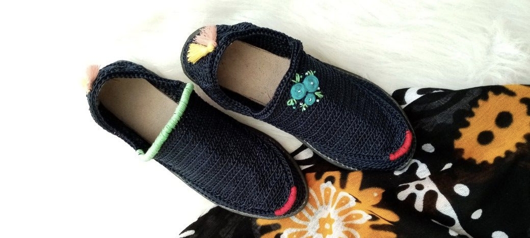 گیوه زنانه بافتنی با طرحی ظریف و دست دوز، جلوه ای دلنشین از هنر ایرانی را در هر قدم به نمایش می گذارد! از نخ نرم و قابل تنفس بافته شده تا پاهایتان در تمام طول روز احساس راحتی و سبکی کنند. رنگ بندی متنوع و بافت لطیف آن استایلی گرم و صمیمی برای خانه و بیرون فراهم می سازد. گیوه زنانه بافتنی یعنی ترکیب هنر، راحتی و سادگی در قالب کفشی اصیل و دوست داشتنی!