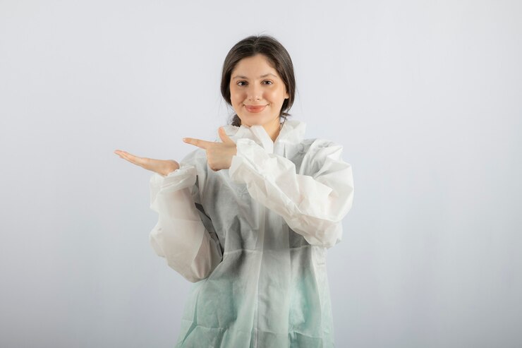 قیمت خرید رو پوش پزشکی زنانه یکبار مصرف با آستین بلند + فروش ویژه