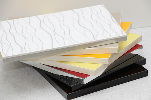 روکش و ورق هایگلاس: به صورت کلی ام دی اف از ذرات ریز چوب به همراه چسب ساخته شده است. حال برای آنکه استحکام بیشتری داشته باشد و نیز زیبایی ظاهری آن بیشتر شود، از روکش های مختلف استفاده می کنند. جنس این روکش ها معمولاً از جنس اکریلات بوده و دوام ام دی اف را بالاتر می برند. از روکش ها و ورق هایگلس ام دی اف که تراکم نسبتا خوبی دارند، معمولا برای تزئین درب های داخلی، قفسه بندی کابینت ها، به عنوان پنل های چوبی و نیز به عنوان حالت دهنده برخی لوازم تزئینی استفاده می شود. روکش های ام دی اف به دو دسته براق (ورق هایگلاس) و مات (اوپک) تقسیم می شوند. سطح براق و هموار به منظور استفاده در طبقه بندی و تزئینات ایده آل است و سطوح مات معمولا برای مکان هایی که شستشو اهمیت بیشتری دارد استفاده می شوند.