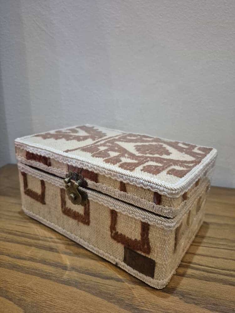 جعبه های گلیمی دست بافت ترکیبی از هنر و کاربردی بودن است که فضایی خاص به هر محیط می بخشد. هر صندوقچه با دقت و ظرافت توسط هنرمندان ساخته می شود و طرح های منحصر به فردی دارد که اصالت کار دست را نمایان می سازد. استفاده از چوب مرغوب و بافت های دقیق باعث دوام بالا و زیبایی ظاهری آن شده است. این محصول مناسب نگهداری وسایل مختلف و تزئین فضا است و می تواند به عنوان یک قطعه دکوری خاص در خانه یا محل کار به کار رود. صندوقچه چوبی دست بافت نشان دهنده ترکیب هنر سنتی با نیاز های مدرن است.