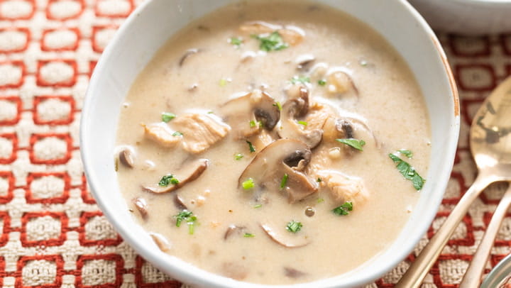 سوپ نیمه آماده مرغ و قارچ غذایی سریع و مقوی است که با ترکیب مرغ تازه، قارچ، سبزیجات خشک و ادویه های طبیعی تهیه می شود. این سوپ به آسانی و در کوتاه ترین زمان آماده می شود و انتخاب مناسبی برای وعده های سبک و سالم است. طعم دلپذیر قارچ همراه با پروتئین مرغ باعث افزایش ارزش غذایی این سوپ می شود. تنها با افزودن آب و جوشاندن محتویات بسته می توان یک غذای گرم و مغذی داشت که برای همه سنین مناسب است و انرژی بدن را تامین می کند.