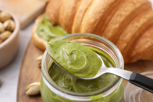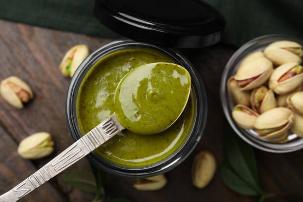 کره پسته خوش عطر با رایحه طبیعی و بافتی لطیف، از دل مغز پسته های تازه و مرغوب به دست می آید. عطر دلپذیر و طعم ملایم آن، ترکیبی دل انگیز می سازد که هر بار مصرفش، یاد آور تازگی و اصالت پسته ایرانی است. این کره سبز رنگ با بافتی یکدست و نرم، انتخابی مناسب برای علاقه مندان به طعم های طبیعی و مغذی است. می توان آن را در کنار نان، میوه یا دسر سرو کرد و از انرژی سالم و طعم دل چسبش لذت برد. هر قاشق از این کره، تجربه ای تازه و خوش بو از پسته واقعی است.