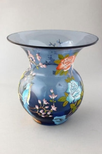 مینا کاری روی شیشه یک هنر زیبا و دقیق است که در آن طرح های مینا کاری، مانند گل ها، نقوش هندسی و اسلیمی، بر روی سطح شیشه ای ایجاد می شود. در این فرآیند، رنگ های مخصوص مینا به طور دستی روی شیشه کشیده شده و سپس شیشه در دمای بالا پخته می شود تا رنگ ها ثابت شوند. این تکنیک باعث ایجاد سطحی براق و رنگی می شود که طرح های هنری را به نمایش می گذارد. میناکاری روی شیشه معمولاً برای ساخت گلدان ها، تزیینات و ظروف استفاده می شود و به عنوان یک اثر هنری و تزئینی با ارزش در صنایع دستی شناخته می شود.