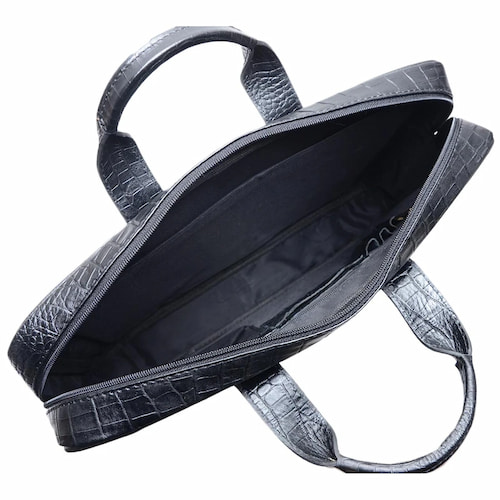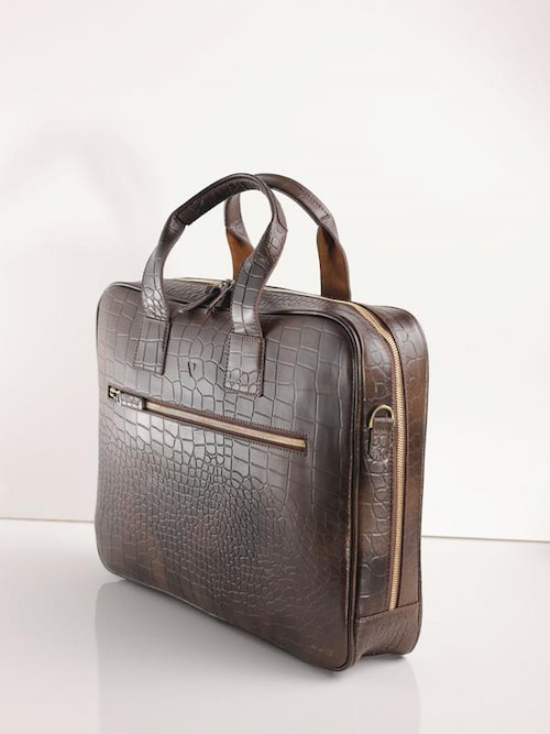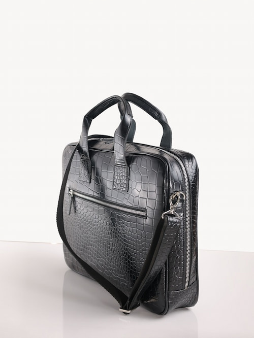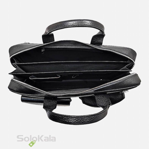 این کیف اداری دو دسته از چرم با کیفیت گاوی تولید شده و داری طرح لیزارد می باشد که جلوه فوق العادی به کیف داده است این کیف دارای دو جیب بیرونی میباشد که یکی از آنها با زیپ و دیگری با دکمهی مگنتی بسته میشود داخل این کیف جا دار و جذاب به سه قسمت تقسیم شده است تا خیال شما از مرتب بودن وسایلتان راحت باشد. علاوه بر دسته یک بند 150 سانتیمتری چرمی برای استفاده دوشی در نظر گرفته شده تا در صورت تمایل از آن استفاده کنید.