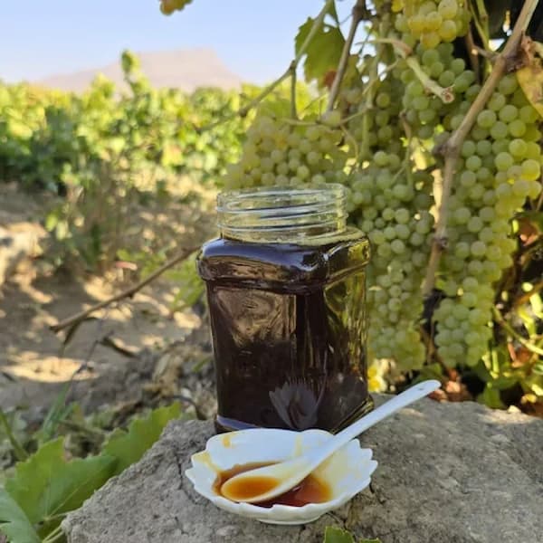 شیره انگور محلی یکی از فرآورده های طبیعی و سنتی ایران است که بهصورت دستی از آب انگور تازه تهیه می شود. این شیره بدون مواد افزودنی یا نگهدارنده تولید شده و طعمی شیرین، طبیعی و دلپذیر دارد. شیره انگور محلی منبع غنی از قند طبیعی، آهن، کلسیم و پتاسیم است و بهعنوان تقویت کننده بدن و درمان کم خونی شناخته می شود. معمولاً از آن در وعده صبحانه، تهیه حلوا، دسر و شیرینی های خانگی استفاده می کنند. رنگ آن بسته به نوع انگور از قهوهای روشن تا تیره متغیر است و در بستهبندی های مختلف خانگی یا سنتی عرضه می شود.