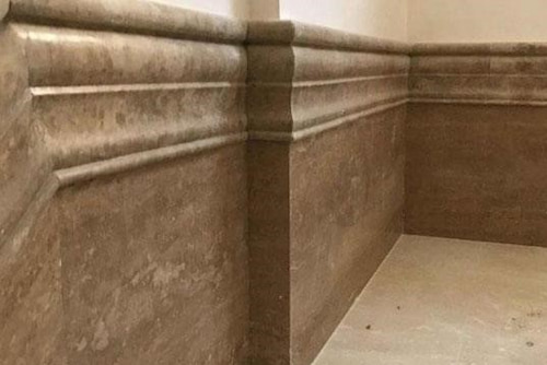 دیوار های گچی از مقاومت لازم در برابر نم و رطوبت برخوردار نیستند، از این رو به منظور جلوگیری از رسیدن رطوبت به آن ها سنگ پلاک یا قرنیز سنگی مورد استفاده قرار می گیرد. ارتفاع سنگ قرنیز ۱۰ سانتی متر است. این سنگ نه تنها از دیوار محافظت می کند بلکه زیبایی خاصی به کفپوش ساختمان می بخشد. قرنیز سنگی از جمله قرنیز هایی است از گذشته تا کنون مورد استفاده قرار گرفته است. در گذشته سنگ قرنیز به صورت ساده و ساب خورده به کار می رفت اما در حال حاضر با استفاده از دستگاه های CNC می توان طرح های بسیار زیبایی بر روی آن ایجاد نمود و جذابیت آن را دو چندان کرد.