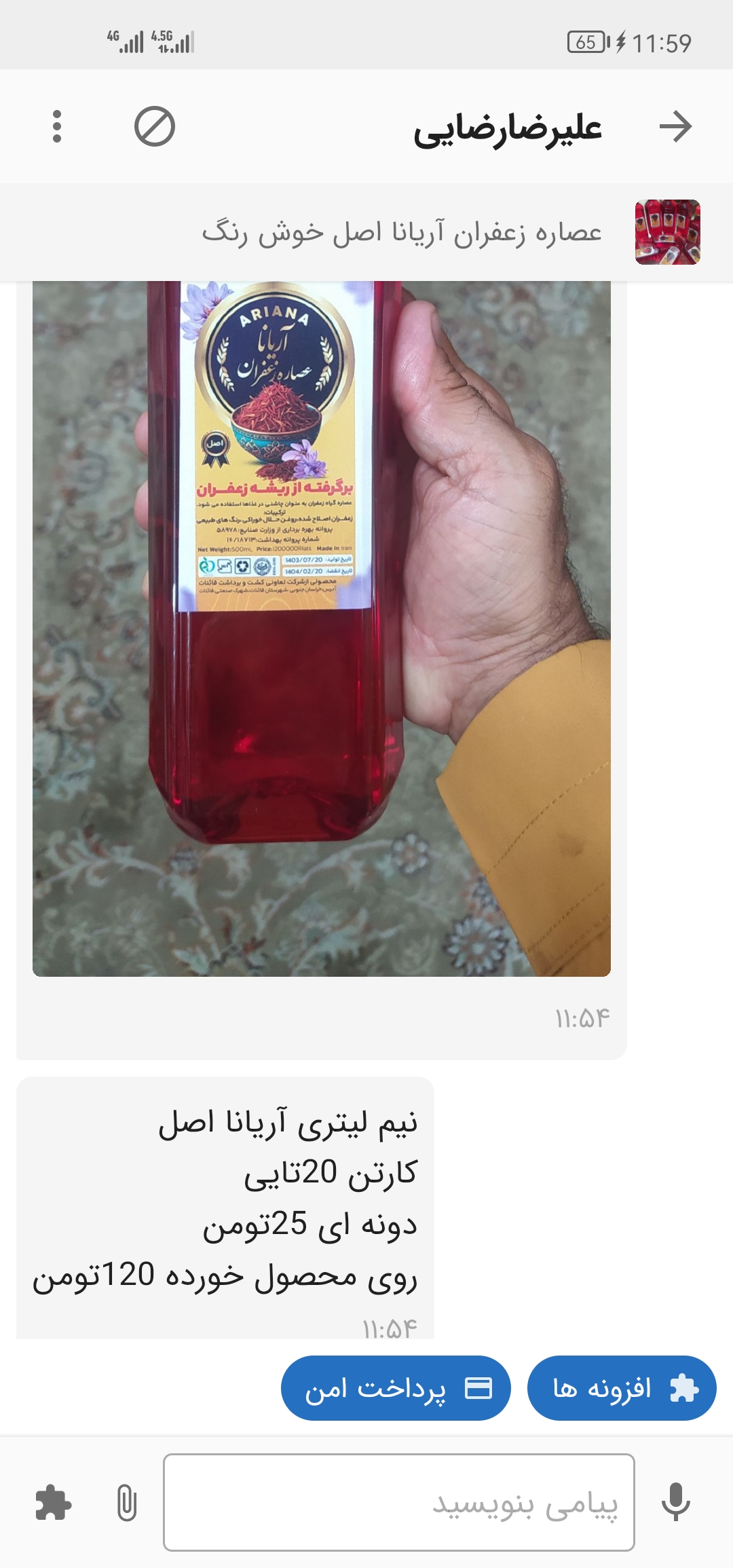 عصاره زعفران آریانا نیم لیتری ، انتخاب بی نظیری برای خرید عمده است. این عصاره ارزشمند از زعفران با کیفیت بالا تهیه شده و دارای خواص بی نظیری است. با تمرکز بر کیفیت برتر و قیمت ارزان، عصاره زعفران آریانا انتخاب ایده آلی برای صنایع غذایی، آشپزی، و همچنین استفاده در زیبایی شناسی می باشد. این محصول نه تنها به خاطر کیفیت بالا و خواص غذایی اش مورد توجه است، بلکه به دلیل ارزش اقتصادی بیشتری که نسبت به دیگر محصولات دارد، برای خریداران عمده بسیار جذاب است. با عصاره زعفران آریانا، امتیاز برتری بر رقبا کسب خواهید کرد.