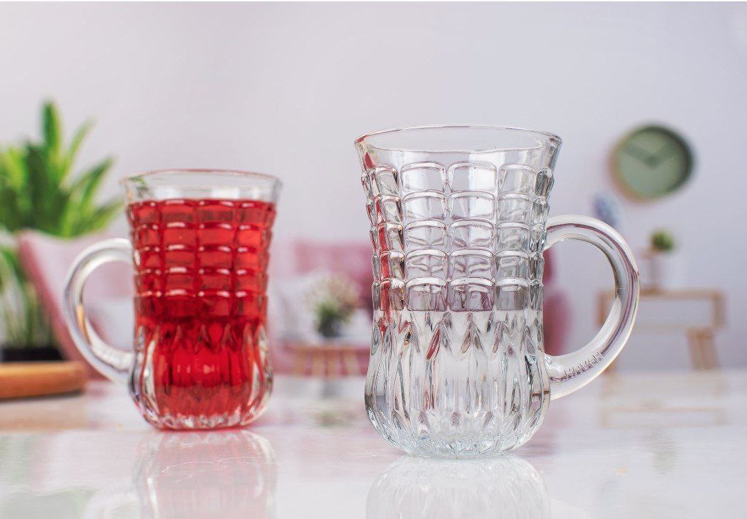 خرید عمده استکان دسته دار بلور مدل گاندو