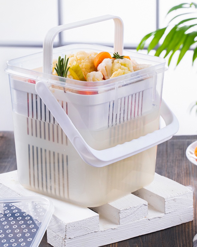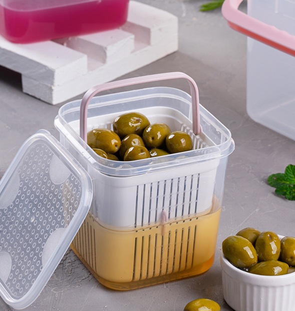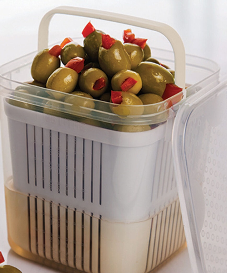 یک ظرف ترشیجات به همراه یک در و یک سبد از جنس پلی پروپیلن به گنجایش داخلی 1.125 لیتر، وزن 138 گرم و ابعاد 12.5 × 11.8 × 11.8 سانتیمتر. این ظرف سایز 1 از مجموعه ظروف نگهدارنده ترشیجات و لبنیات است که با آبکش می باشد. طراحی این محصول به گونه ایست که برای انواع ترشیجات، لبنیات و کنسروهای باز شده و … قابل استفاده است. برای تضمین سلامت شما از مواد فاقد BPA یا به اصطلاح همان BPA-Free استفاده شده است. تکنولوژی نانو در تولید محصولات سبب شده علاوه بر ضد گرد و غبار بودن محصولات، در برابر خط و خش هم مقاوم باشند. از دیگر ویژگی های محصولات می توان به آنتی باکتریال بودن آن ها اشاره کرد. در انتها لازم به یادآوری است که قابل بازیافت بودن تولیدات کمک شایانی به محیط زیست بوده و پس از پایان عمر مفید محصولات به راحتی به چرخه استفاده مجدد بر خواهند گشت. تعداد در کارتن ۲۴ تا