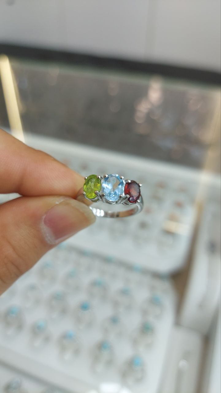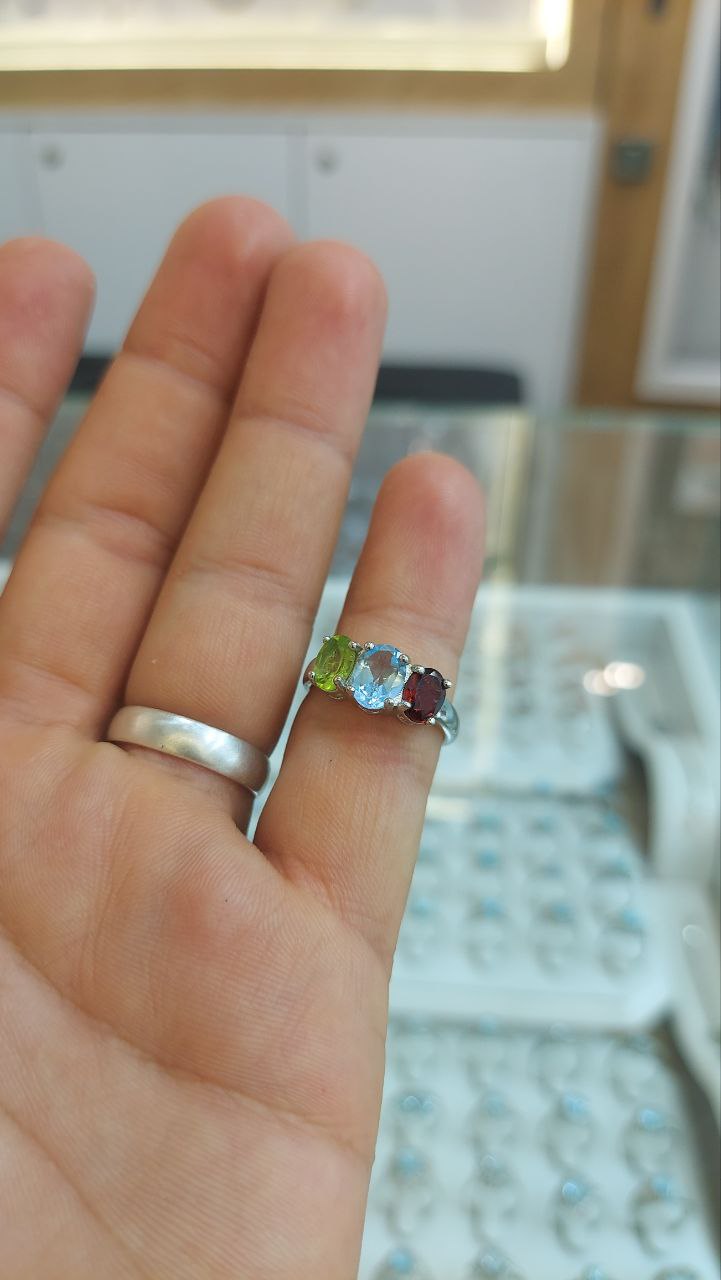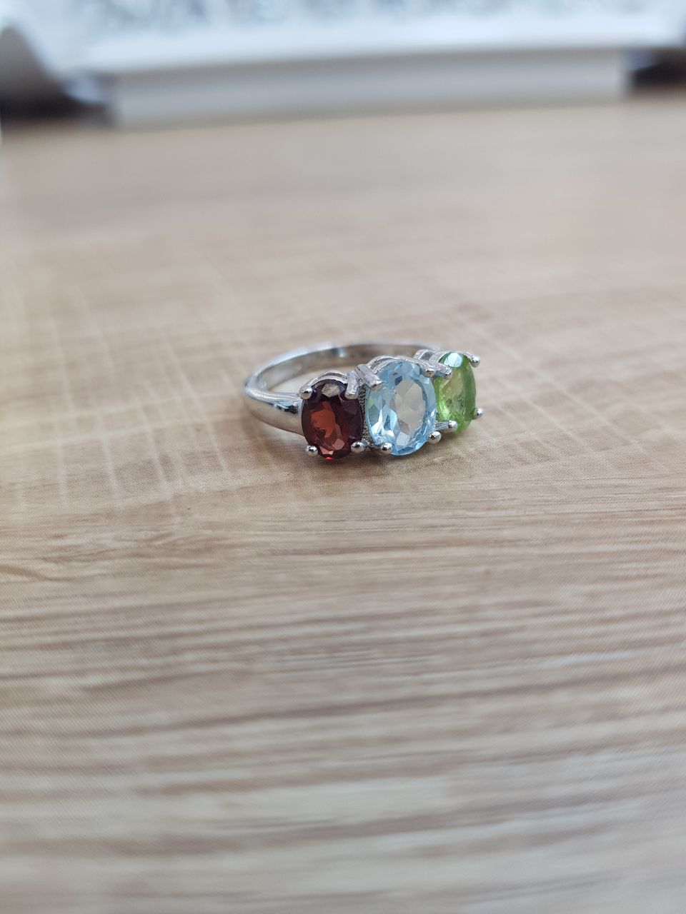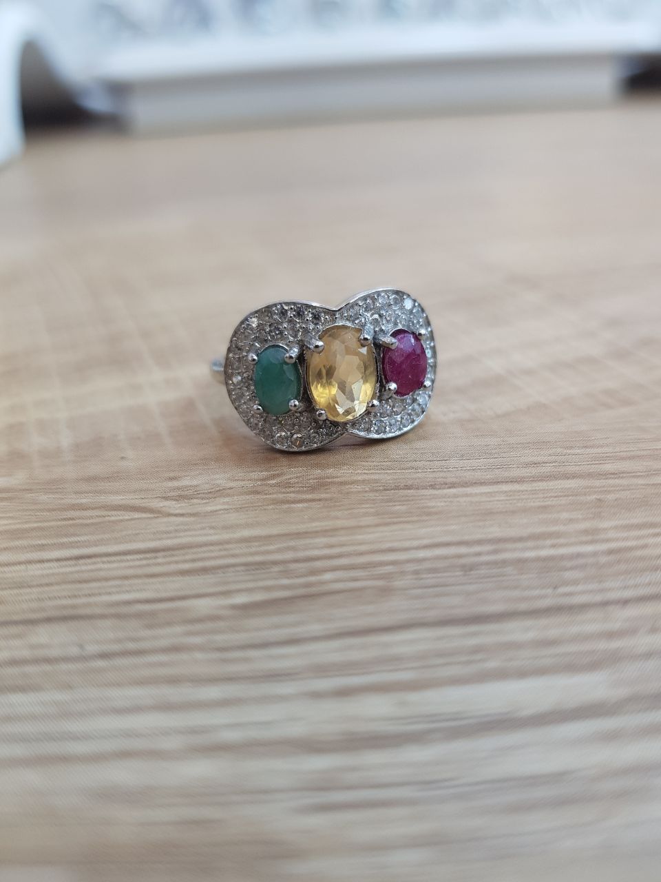 خرید انگشتر ۳ نگین نقره زنانه رادیوم با نگین های جواهری اصلی