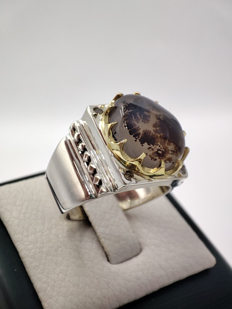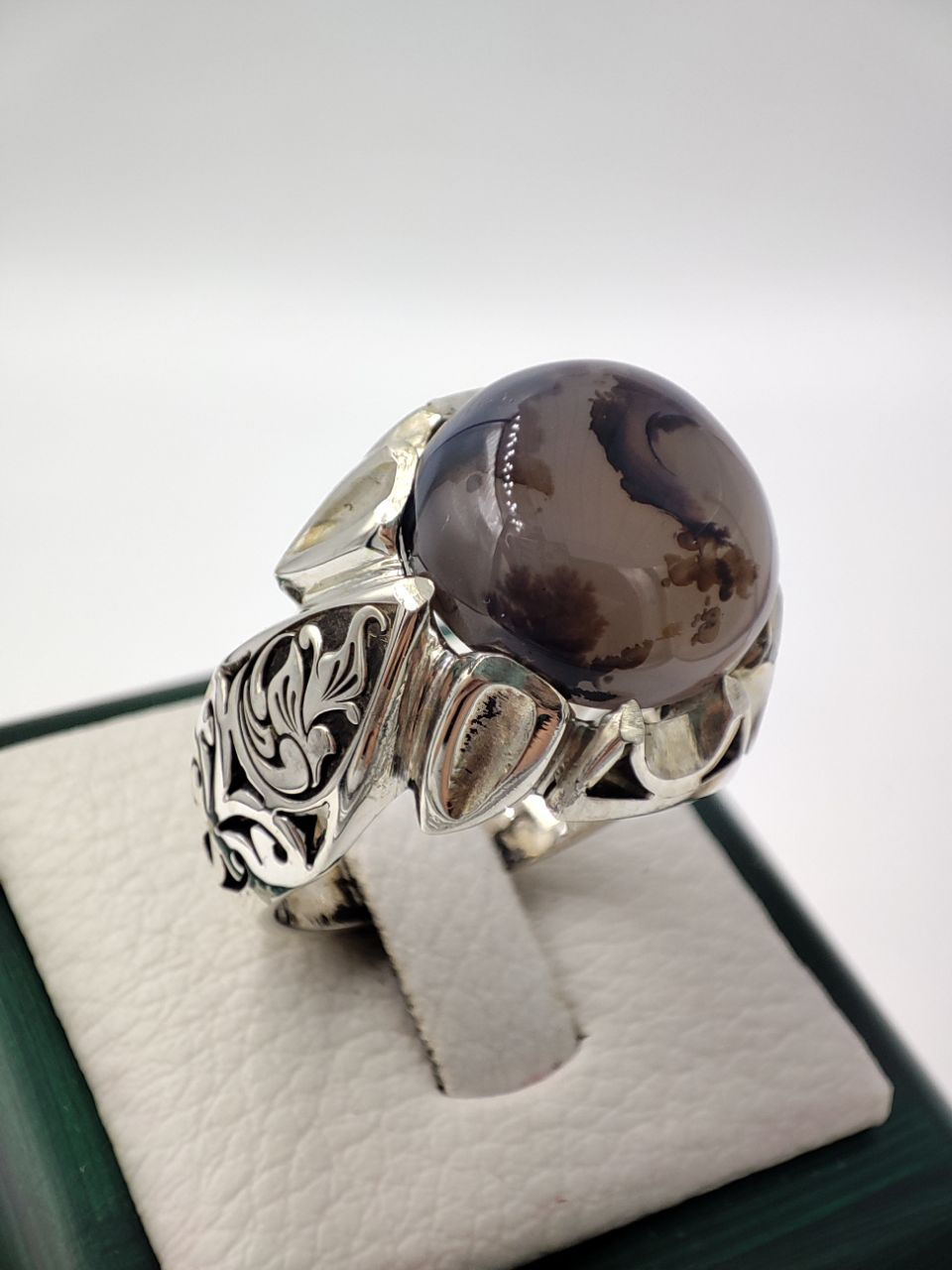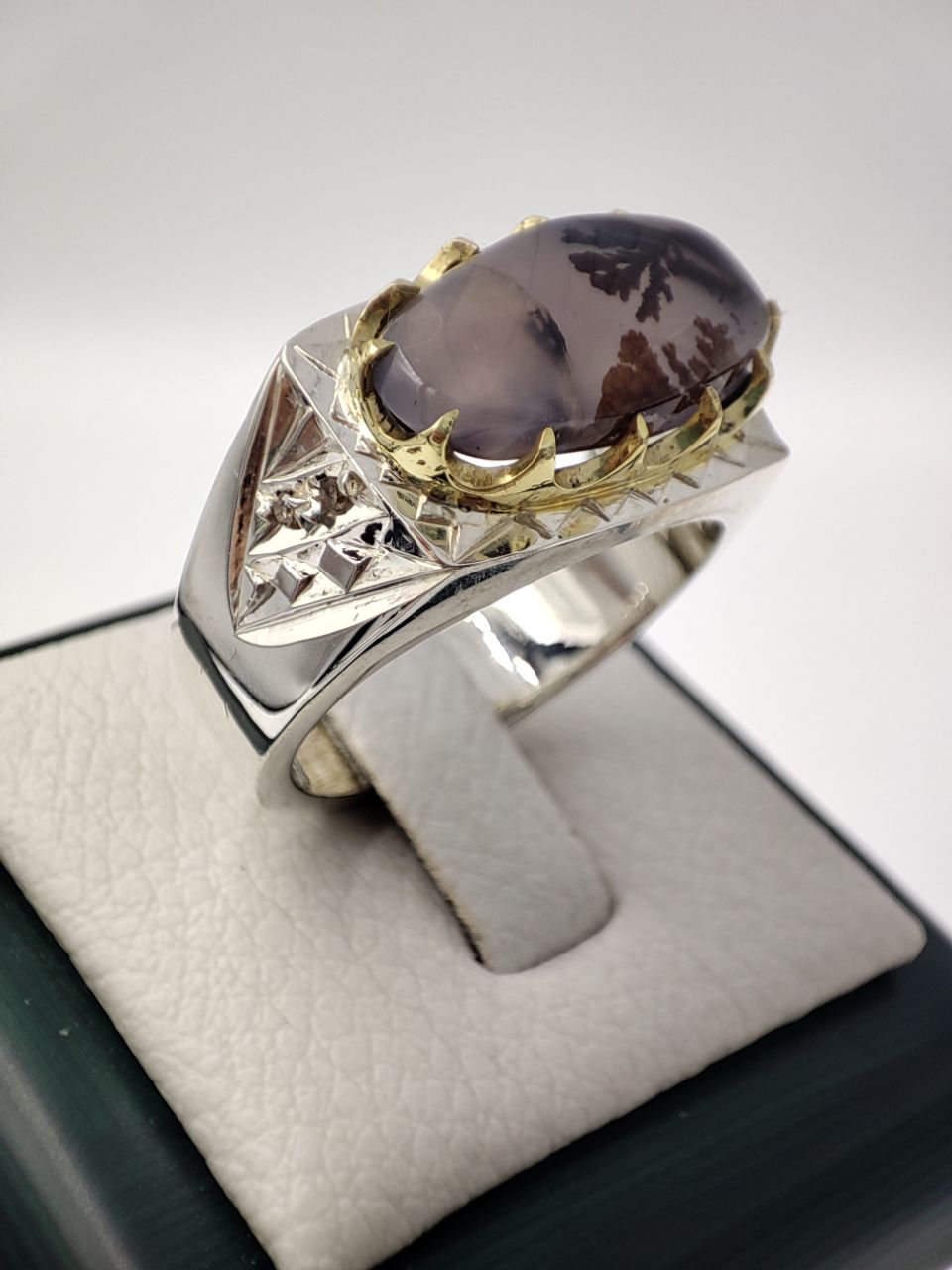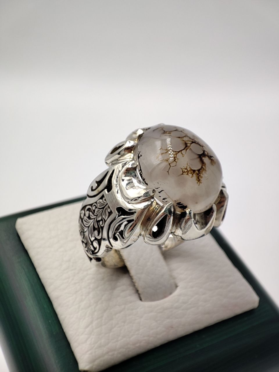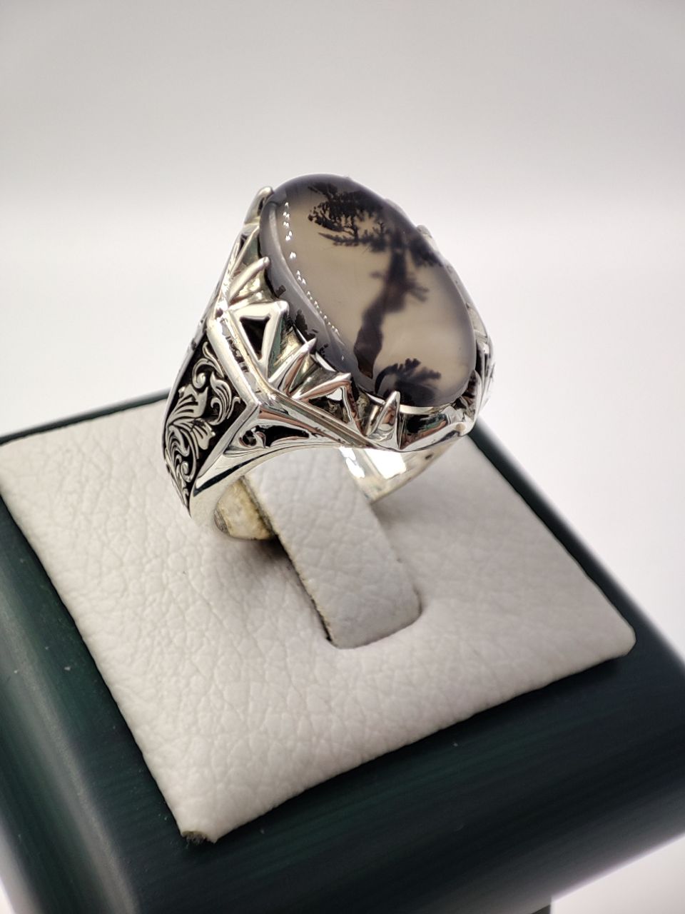 خرید انگشتر نقره دست ساز مردانه با نگین شجر