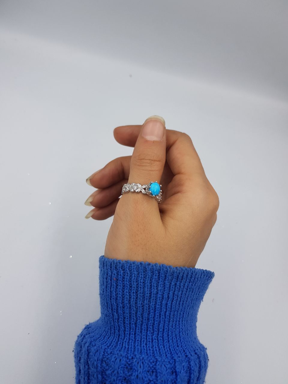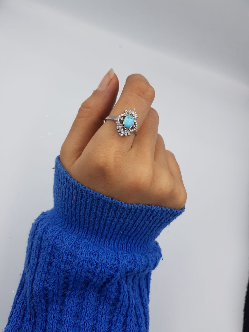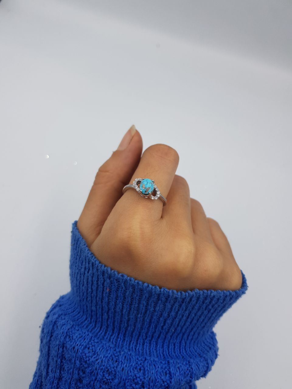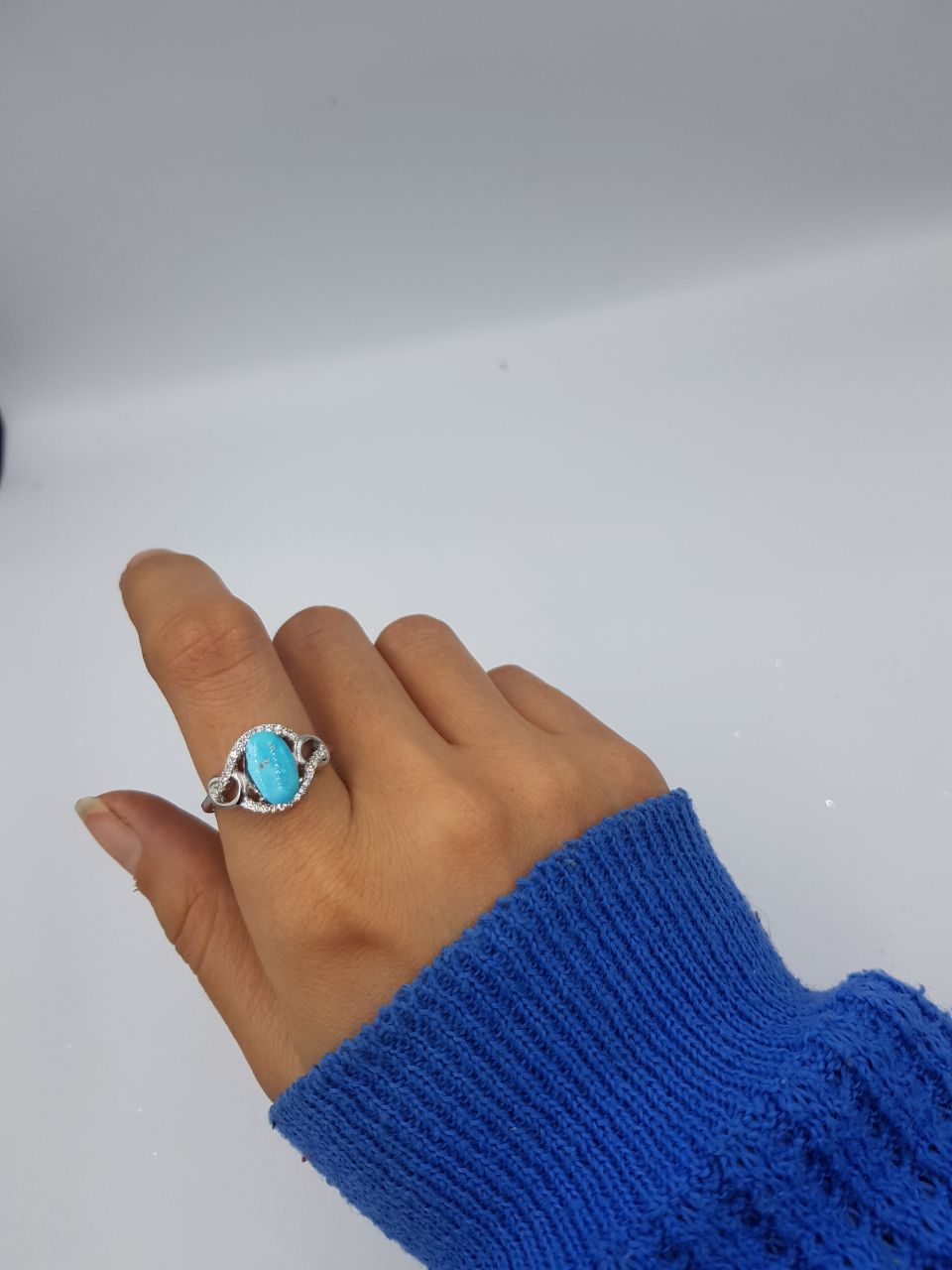 خرید انگشتر نقره زنانه رادیوم با نگین فیروزه نیشابوری