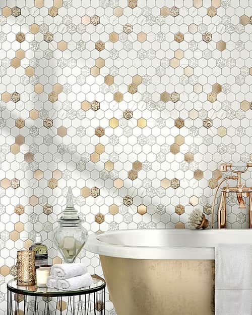 خرید کاشی حمام سفید طلایی + قیمت فروش استثنایی