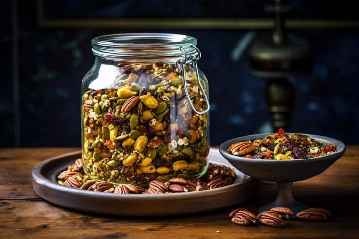 معجون چهار مغز یکی از خوراکی های مقوی و انرژی زا است که از ترکیب مغز گردو، بادام، فندق و پسته به همراه عسل طبیعی، شیر و گاهی خرما تهیه می شود. این معجون علاوه بر طعم دلنشین، سرشار از ویتامین ها، مواد معدنی و اسید های چرب مفید است و برای تقویت حافظه، افزایش انرژی روزانه و بهبود عملکرد بدن بسیار مفید می باشد. مصرف منظم معجون چهار مغز در وعده صبحانه یا میان وعده، به خصوص برای ورزشکاران و دانش آموزان توصیه می شود. این محصول در بسته بندی های شیشه ای و پلاستیکی به صورت خانگی و صنعتی عرضه می گردد.