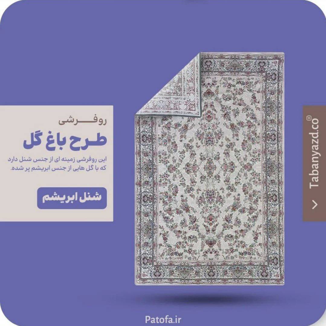 خرید مستقیم از کارخانه و عمده + روفرشی ابریشم طرح باغ گل تابان یزد 12 متری