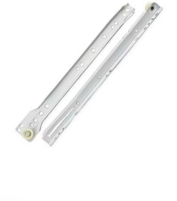 ریل غلطکی سفید یکی از ابتدایی ترین نوع ریل های کشو هستند که دارای ساختار بسیار ساده ای هستند و اغلب برای کشوهای با وزن سبک به کاربرده میشوند، این ریل از دو بخش اصلی که یک قسمت به بدنه و قسمت دیگر به کشو نصب شده تشکیل شده است.