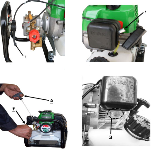 سمپاش های زنبه ای درحالت عادی و معمولی به صورت ثابت می باشند و در عملیه ی سمپاشی توسط شیلنگ های طویل مانندش انجام می گیرد، ولی با سمپاش های فرغونی عملیه ی سمپاشی را می توان در مزارع و مخصوصا در باغ هایی که دارای درخت های بلند قامت و یا با ارتفاع بلند باشد را می تواند به راحتی سمپاشی نماید.