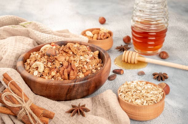 گرانولا خانگی با عسل و دارچین ترکیبی معطر و طبیعی از جو دو سر، مغز ها و عسل خالص است. عطر گرم دارچین و شیرینی طبیعی عسل طعمی آرام بخش ایجاد میکند. این گرانولا بدون افزودنی مصنوعی تولید شده و سرشار از انرژی سالم است. مناسب برای مصرف در وعده صبحانه یا میان وعده سبک است. بافت ترد و طعم دل پذیر آن حس تازگی و نشاط به همراه دارد.