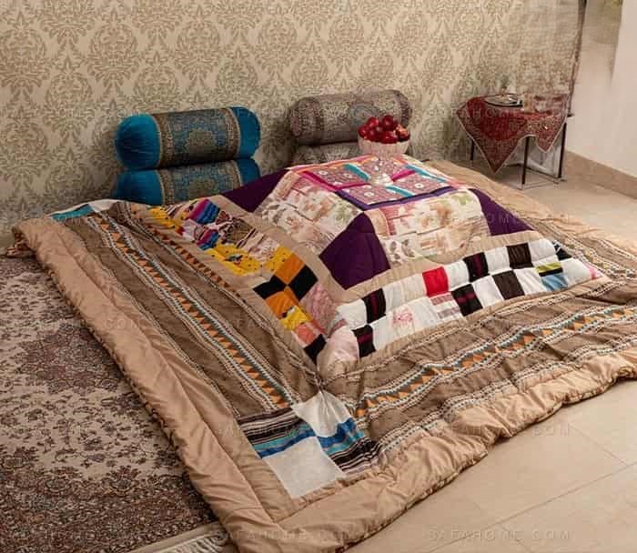لحاف کرسی طرح دار یکی از اجزای سنتی خانه های ایرانی در فصل زمستان است که با طرح های متنوع و رنگارنگ، جلوه ای زیبا و گرما بخش به فضا می بخشد. این لحاف ها معمولاً با پارچه های ضخیم و پنبه طبیعی تهیه می شوند و طرح های سنتی مانند بته جقه، گل و بوته یا نقش های اسلیمی دارند. لحاف کرسی علاوه بر کاربرد گرمایشی، نمادی از دورهمی های خانوادگی در شب های سرد زمستان است و حس نوستالژی و صمیمیت را به خانه می آورد.