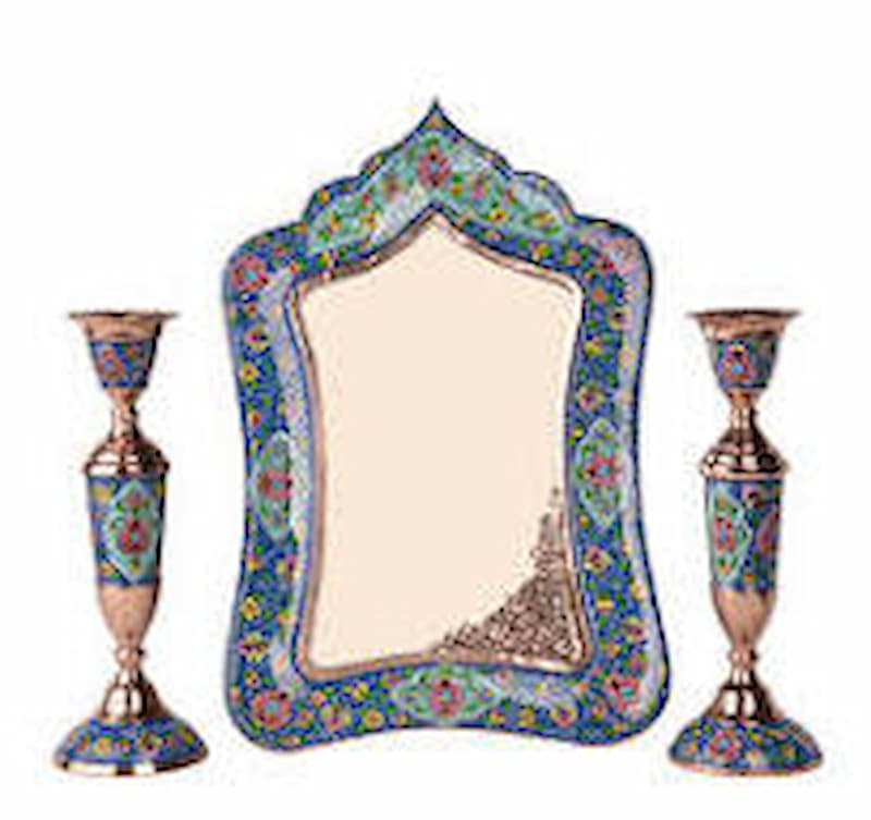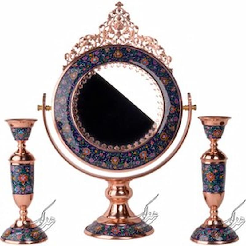 خرید و قیمت انواع آینه و شعمدانی مسی میناکاری شده