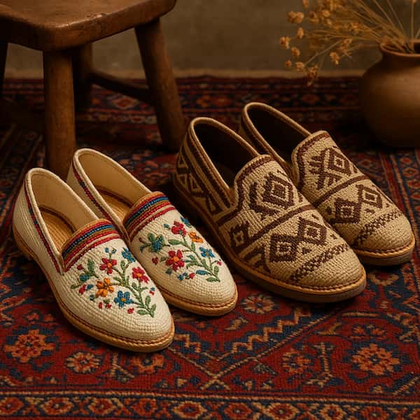 گیوه طرح دار مردانه با بافت دستدوز محکم و الیاف طبیعی، نمادی از اصالت و هنر ایرانی است که راحتی و استایل سنتی را همزمان ارائه میدهد. نقوش هندسی ظریف روی رویه آن، نشاندهندهی ظرافت کار استادکاران روستایی و سلیقه اصیل مردانه است. زیره مقاوم و سبک، دوام طولانیمدت را تضمین کرده و مناسب استفاده روزمره و سفرهای طولانی است. گیوه طرح دار مردانه یعنی ترکیب بینقص هنر، طبیعت و استحکام در هر قدم زندگی.
