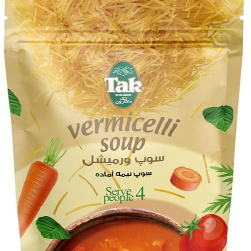 سوپ نیمه آماده تک ماکارون یکی از گزینه های سریع و مطمئن برای مواقعی است که وقت برای آشپزی نداری. این سوپ شامل پودر اصلی، سبزیجات خشک و ادویه است که کافی است با آب ترکیب بشه و روی حرارت ملایم پخته بشود تا آماده مصرف شود. طعم طبیعی و ملایم این سوپ باعث میشود گزینه ای مناسب برای پیش غذا یا وعده سبک باشه. مصرف آن راحت است و برای افرادی که به دنبال غذای فوری و سالم هستند مناسب است.