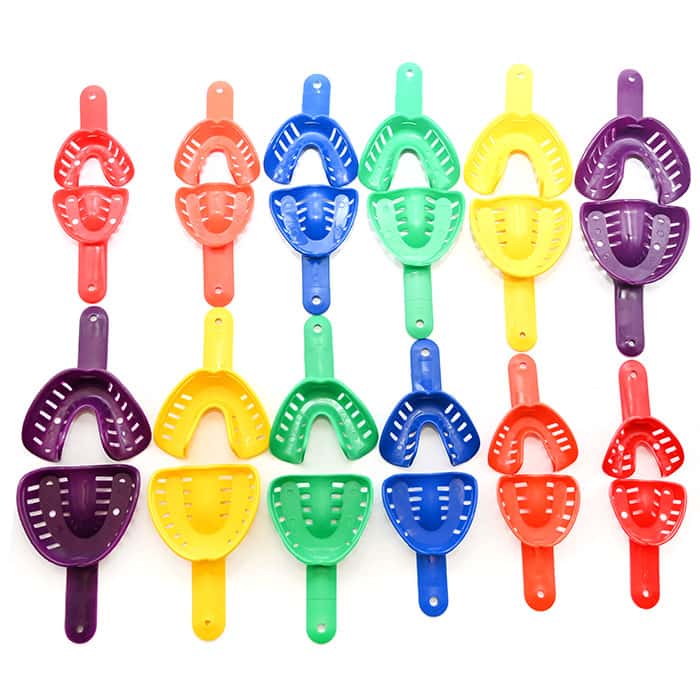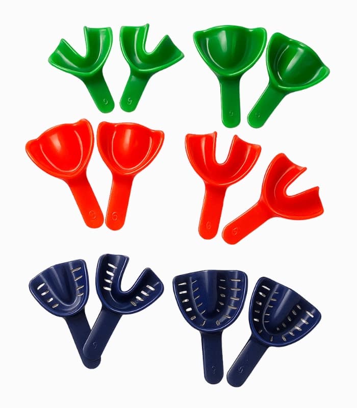 تری قالب گیری دندان یکی از ابزار های مهم در دندانپزشکیه که برای قالب گرفتن از دندان ها و فک استفاده میشه. این وسیله معمولا از جنس پلاستیک مقاوم و سبک ساخته میشه و در اندازه های مختلف برای فک بالا و پایین وجود داره. تری به راحتی با مواد قالب گیری پر میشه و به شکل دقیق فرم دندان ها رو ثبت میکنه. استفاده از اون باعث میشه نتیجه قالب گیری دقیق تر و تمیز تر باشه. بعد از استفاده هم به راحتی قابل دور انداختنه و نیازی به ضد عفونی یا شست و شو نداره. تری قالب گیری دندان گزینه ای کاربردی برای مطب های دندانپزشکی و محیط های درمانی حرفهایه
