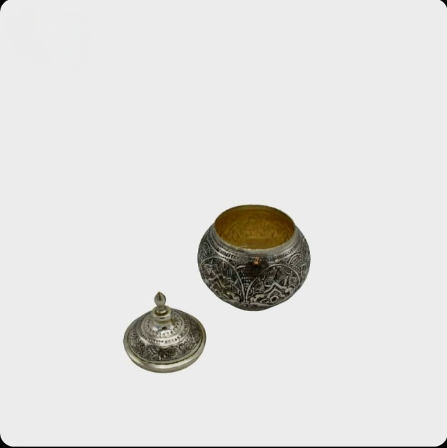 قندان برنجی قلم زنی با آبکاری نقره اصفهان
