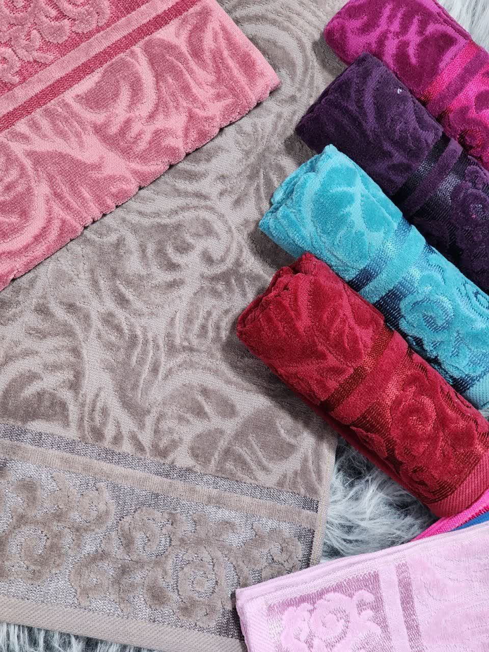 قیمت عمده و کف بازار و به صرفه حوله دستی بهبافت تاج سایز ۳۰ در ۶۰ مخمل
