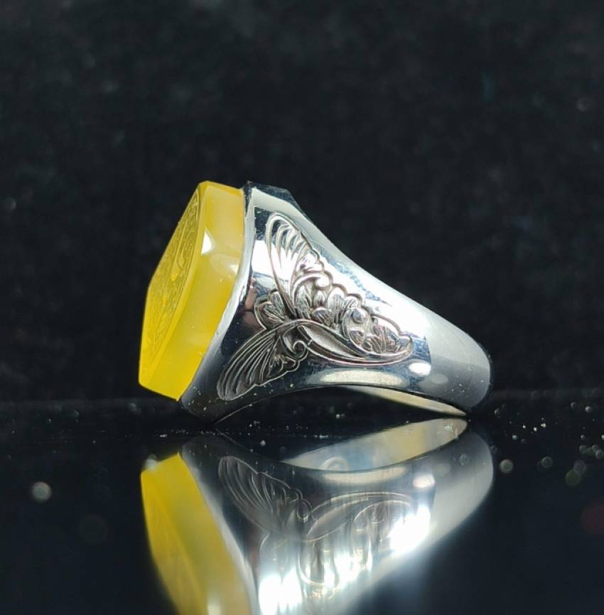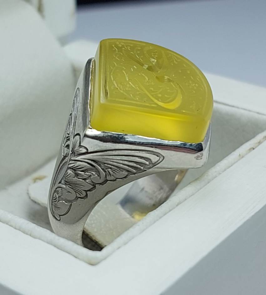 قیمت انگشتر عقیق زرد حکاکی + فروش عمده
