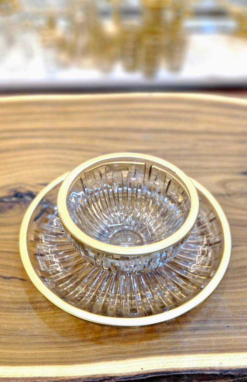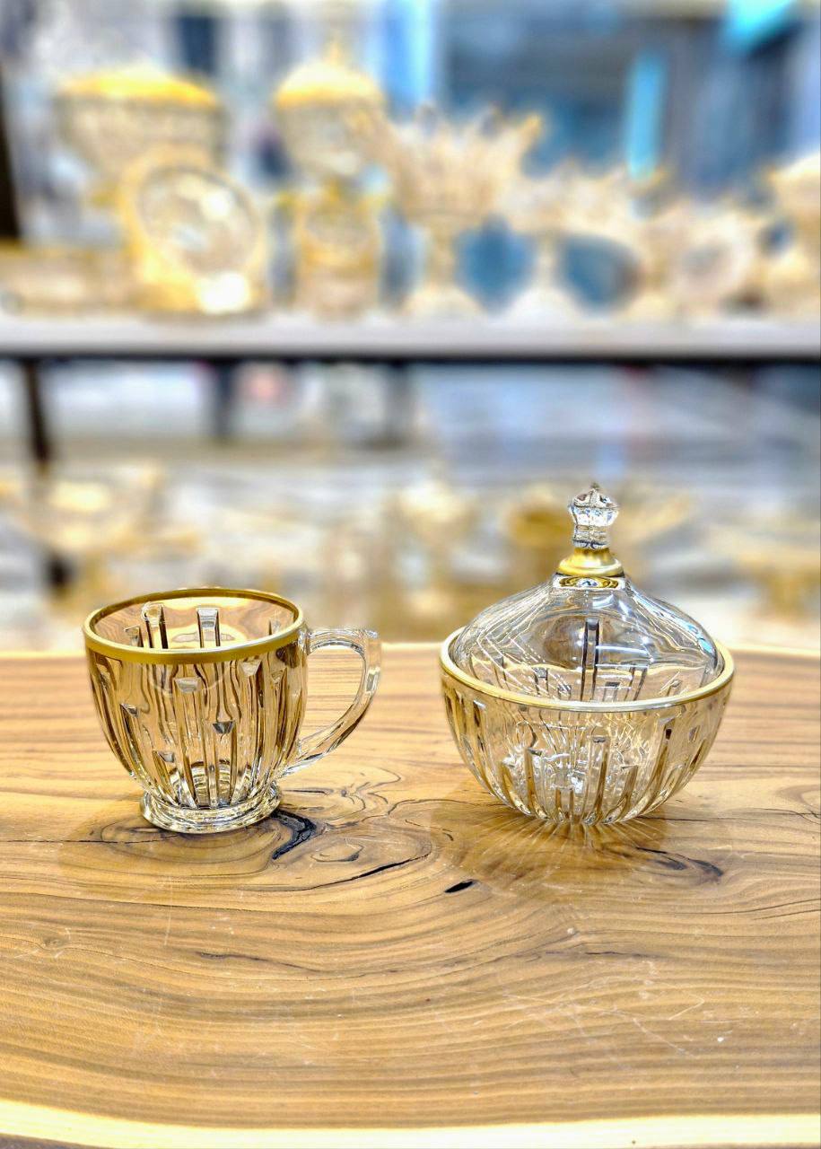 قیمت فروش سرویس ۱۸ و ۲۹ پارچه شامپاین طلای ورسای با پایه های طرح کینگ مشکی گوی دار