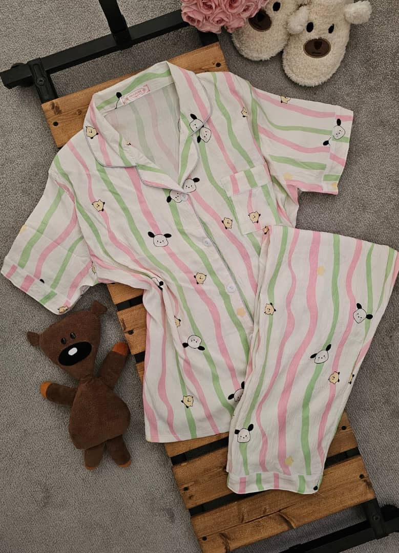 لباس خواب دو تیکه وارداتی پینترستی دخترانه ✔️جنس پارچه : نخ موسلین ( به شدت خنک ، بدون آبرفت، بدون کمرنگ شدن رنگ پارچه) ✔️مناسب سایز ۳۴ الی ۴۲ (سایر مدل ۳۸ میباشد ) ✔️قد لباس: ۶۵ ✔️قد شلوار : ۹۷