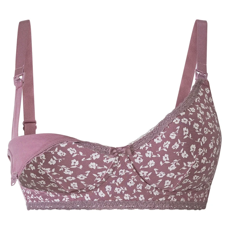 نوع سوتین : سوتین شیردهی جنس الاستین پنبه طرح گلدار مدل لباس زیر بالاتنه تراینگل (Triangle) نحوه بسته شدن لباس زیرقزن فرم داخلی بدون پد رنگ: ارغوانی بند سوتین بند ساده تنخور سوتین استاندارد غیر از شیردهی مصرف روزمره نیز دارد.