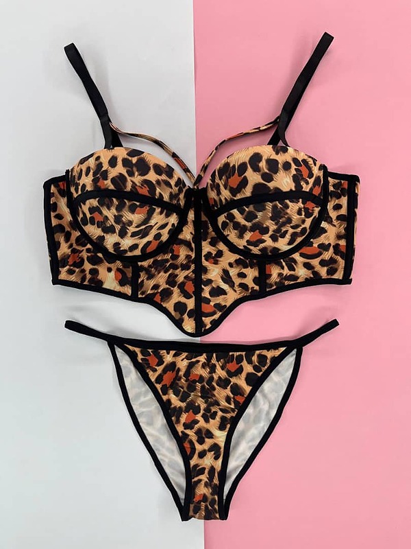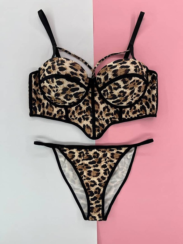 قیمت لباس زیر ست شورت و سوتین اسفنجی جک دار فانتزی پلنگی