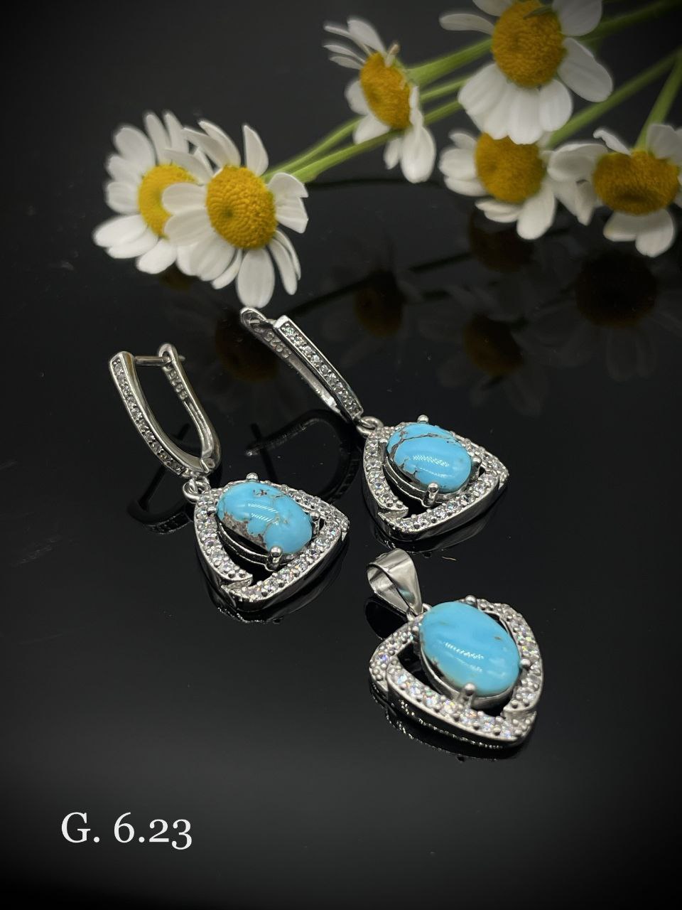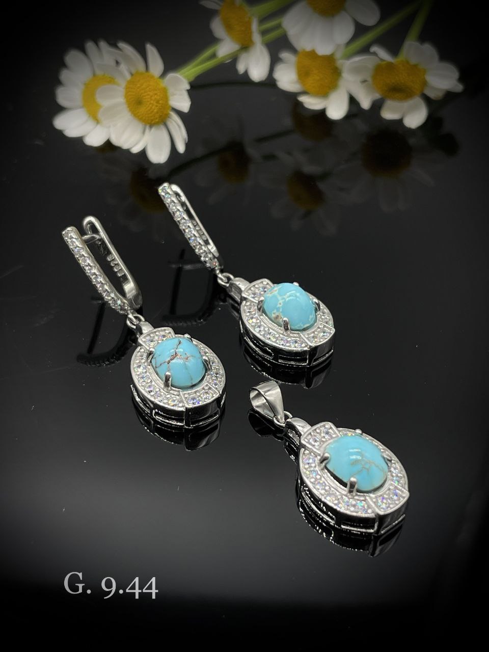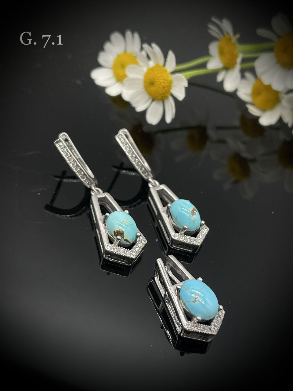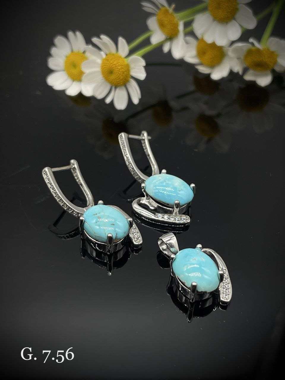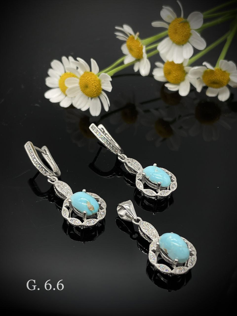 نیم ست نقره رادیوم با نگین فیروزه نیشابوری + خرید