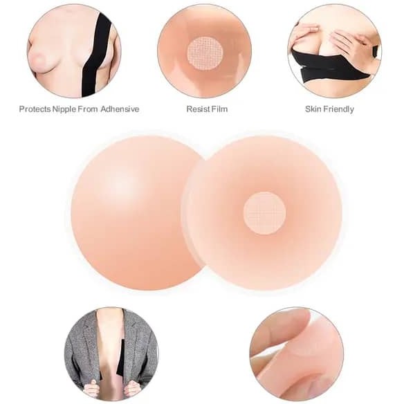 پوشاننده نیپل (سر سینه) سیلیکونی، چسبی ،چند بار مصرف رنگ بدن - بسته 2 عددی گزینه مناسبی برای پوشاندن نوک سینه بوده و قابل استفاده با لباسهای مجلسی پشت باز، دکلته و...است. این پد دارای لبههای نازک برای جلوه طبیعی سینه از زیر لباس بوده و قطر آن حدوداً 5 سانتی متر است.