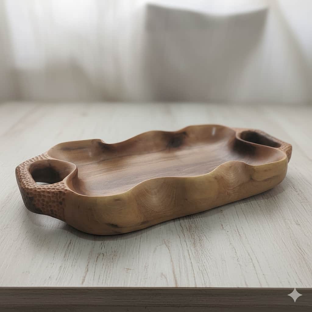 اجیل خوری چوبی دسته دار، ترکیبی از کارایی و زیبایی است که به راحتی می توان آن را در مهمانی ها و جمع های خانوادگی استفاده کرد. طراحی دسته دار این اجیل خوری ها به جا به جایی آسان تر کمک می کند و علاوه بر آن، ظاهر زیبا و منحصر به فردی به آن می بخشد. چوب طبیعی و مقاوم به کار رفته در ساخت این ظروف، حس گرما و اصالت را به فضای میز پذیرایی می آورد. دسته ها معمولاً با دقت و ظرافت طراحی می شوند تا نه تنها جنبه کاربردی داشته باشند، بلکه به زیبایی و هارمونی طراحی نیز افزوده و جلوه ای جذاب به این اجیل خوری ها ببخشند.
