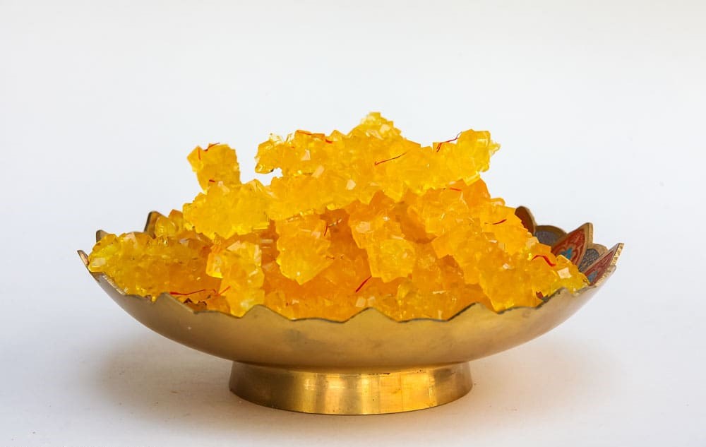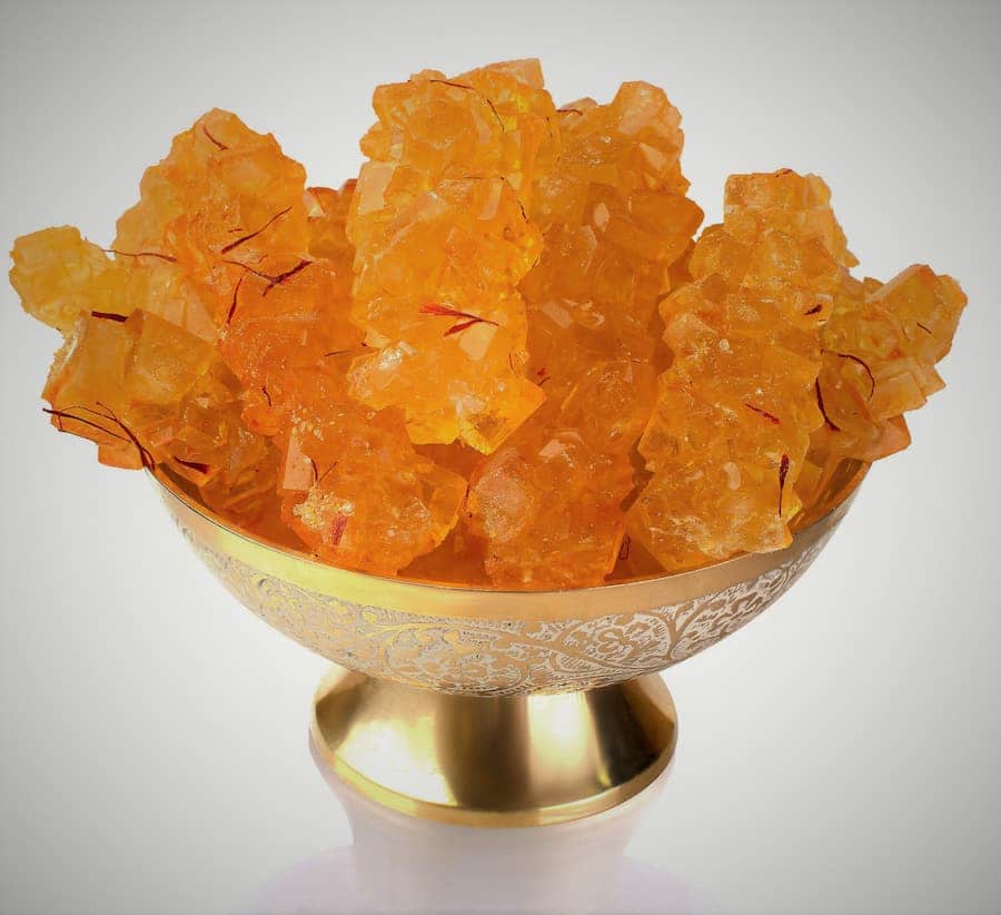 نبات شاخه ای زعفرانی، شاهکار سنتی ایرانی است که با ترکیب شیرینی طبیعی و عطر ناب زعفران، حس خاصی به هر لحظه می بخشد. این نبات ها به شکل شاخه های بلوری و طلایی، با دقت و هنر دست روی تخته های چوبی شکل می گیرند و هر شاخه مثل تکه ای از طبیعت زیبا و شیرین است. طعم ملایم و آرامش بخش آن، چای را به نوشیدنی ای بی نظیر تبدیل می کند و خواص انرژی زا و آرامش بخشی زعفران را دو چندان می کند. نبات شاخه ای زعفرانی، انتخابی اصیل و سالم برای دوست داران طعم های سنتی و خاص ایرانی است.